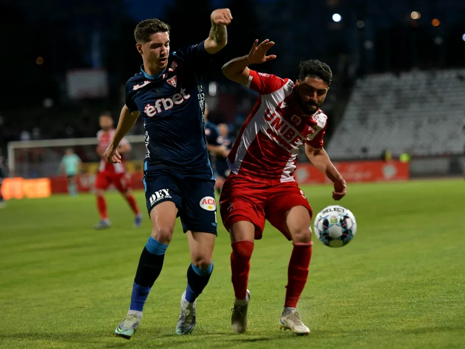 David Raul Miculescu si Geani Mihai Cretu in meciul de fotbal dintre Dinamo Bucuresti si UTA Arad, contand pentru Play-out-ul Ligii 1 Casa Pariurilor, desfasurat pe Stadionul Dinamo din Bucuresti, vineri 13 mai 2022. © FOTO:Razvan Pasarica/SPORT PICTURES