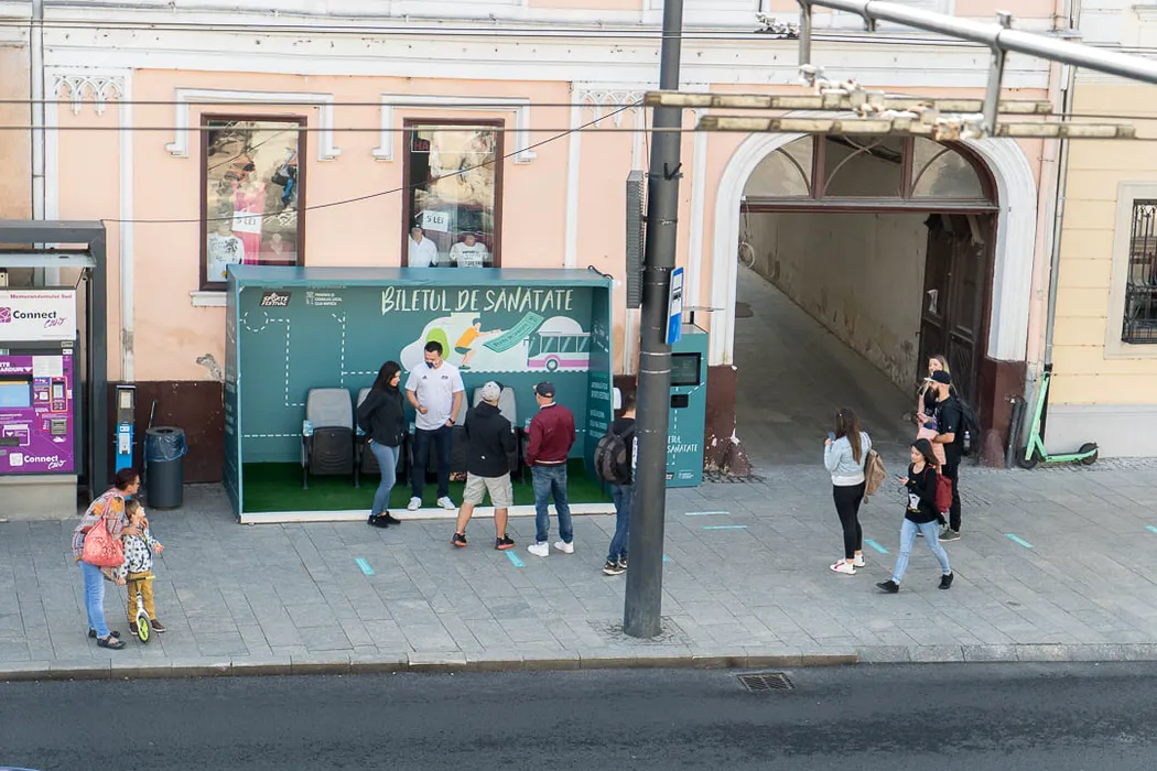 GALERIE FOTO: Prima stație de autobuz din România unde îți poți cumpăra bilet făcând… sport! Ce trebuie să faci pentru a obține „Biletul de sănătate”- FOTO/VIDEO