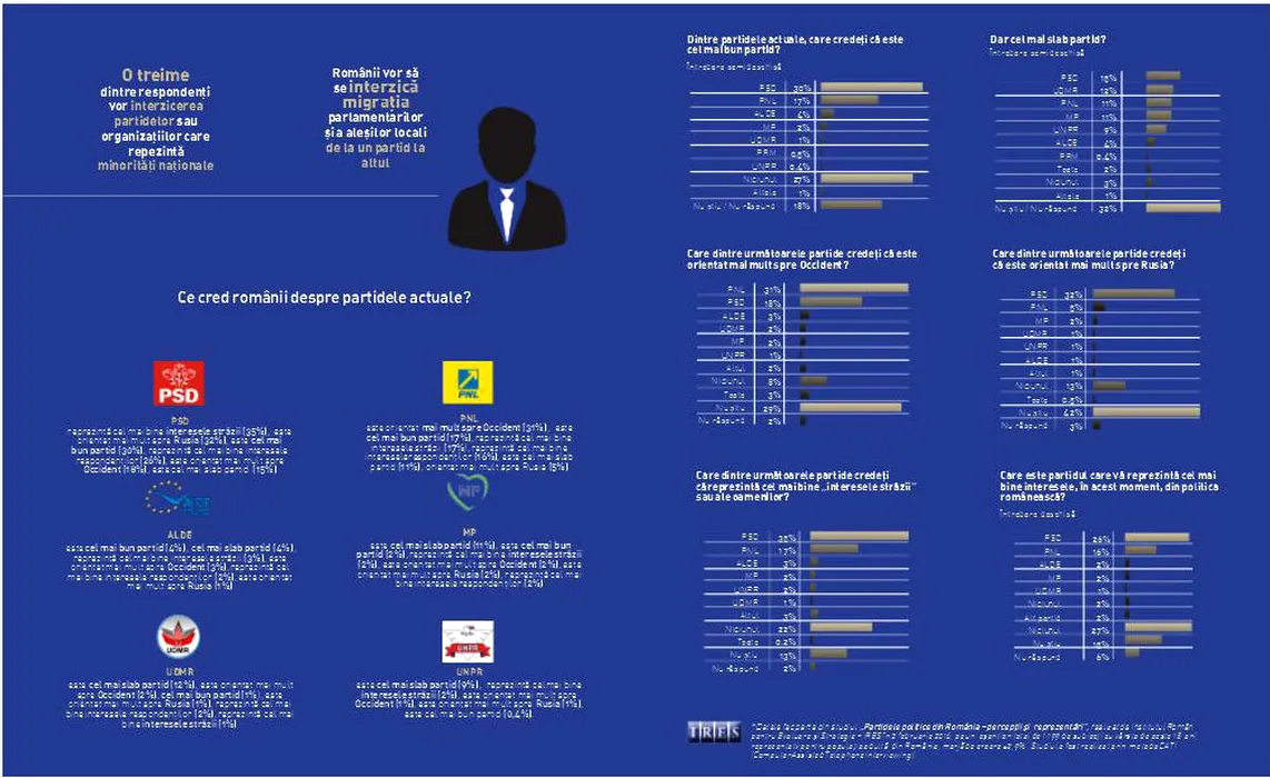 Primele trei cuvinte pe care românii le asociază partidelor. PLUS Unul din doi români crede că PCR era mai bun decât actualele formațiuni politice