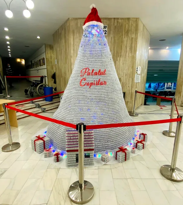 VIDEO – FOTO | Primul brad anti-COVID a fost împodobit, la Palatul Copiilor, cu 19.000 de doze de vaccin: ”Este pro sănătate și pro viață”