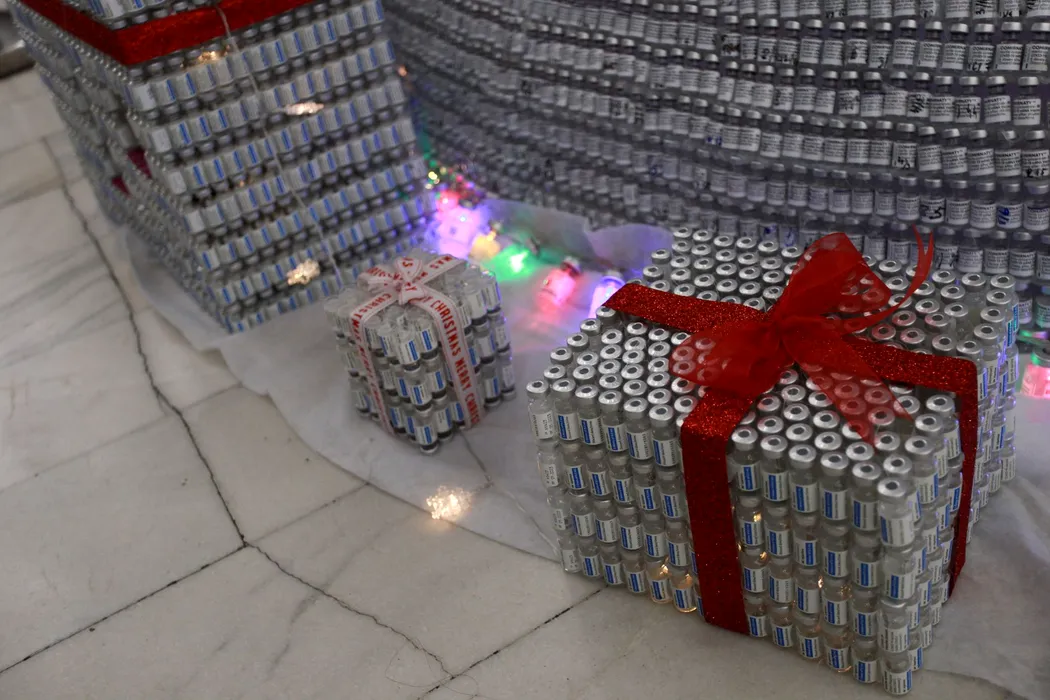 VIDEO – FOTO | Primul brad anti-COVID a fost împodobit, la Palatul Copiilor, cu 19.000 de doze de vaccin: ”Este pro sănătate și pro viață”