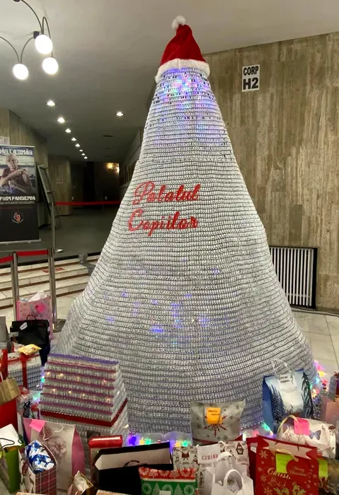 VIDEO – FOTO | Primul brad anti-COVID a fost împodobit, la Palatul Copiilor, cu 19.000 de doze de vaccin: ”Este pro sănătate și pro viață”