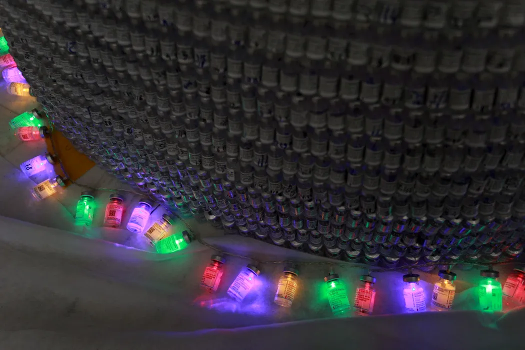 VIDEO – FOTO | Primul brad anti-COVID a fost împodobit, la Palatul Copiilor, cu 19.000 de doze de vaccin: ”Este pro sănătate și pro viață”