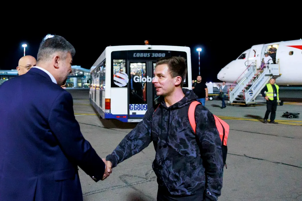 FOTO-VIDEO: Radu, primul pompier rănit la Crevedia tratat în străinătate, a revenit cu bine în țară / A fost întâmpinat de premierul Marcel Ciolacu