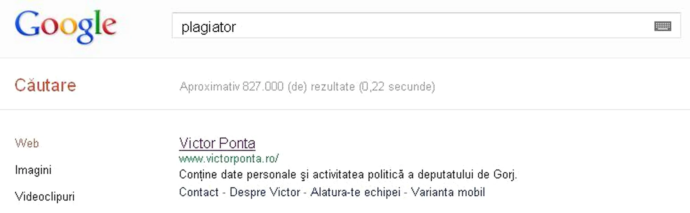 Primul rezultat al căutării „PLAGIATOR” pe Google