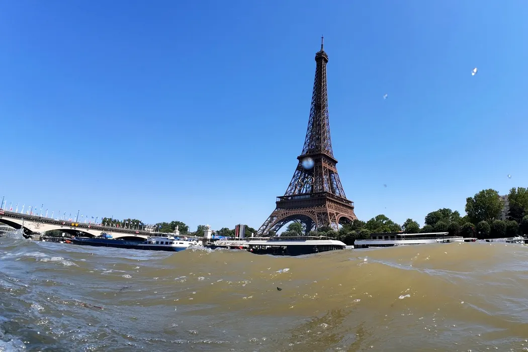 A view of the Eiffel Tower from the River Seine. Tests showed that the water quality of the River Seine was not safe to swim in due to pollution. World Triathlon and the Paris 2024 team made a decision to cancel the Triathlon training session on Sunday 28th July.