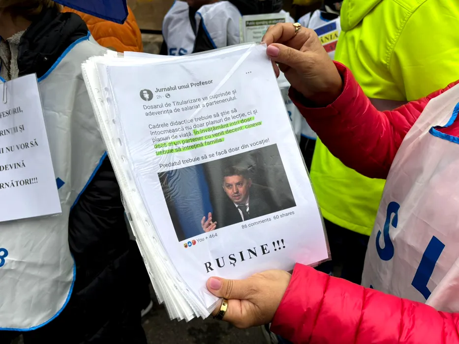 Profesorii au protestat în fața Ministerului Educației: „Jos, jos, Guvernul mincinos.” Urmează o grevă generală în învățământ? / Reacția guvernului