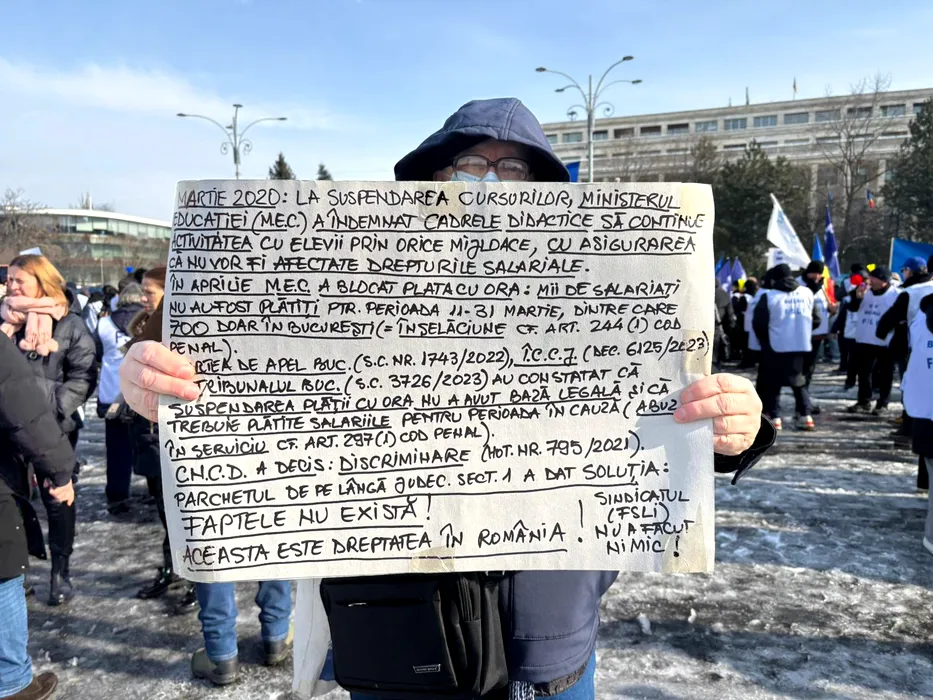 Profesorii și studenții protestează sub geamul lui Bolojan, pe fond asurzitor de vuvuzele. „Nu ne tăia speranța!”/”Vrem grevă generală”