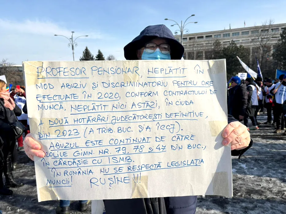 Profesorii și studenții protestează sub geamul lui Bolojan, pe fond asurzitor de vuvuzele. „Nu ne tăia speranța!”/”Vrem grevă generală”