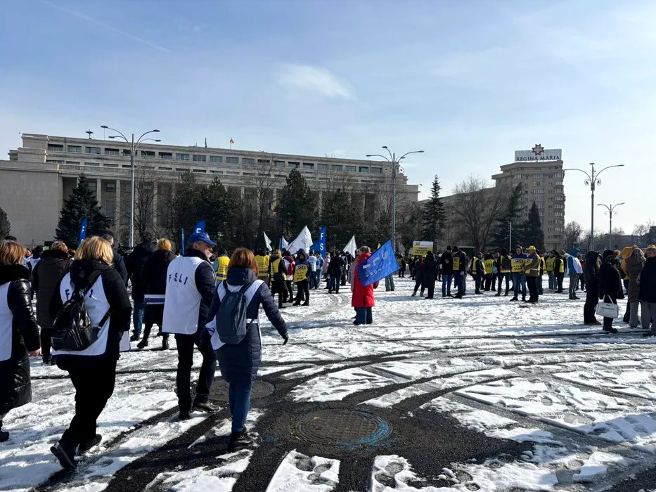 Profesorii și studenții protestează sub geamul lui Bolojan, pe fond asurzitor de vuvuzele. „Nu ne tăia speranța!”/”Vrem grevă generală”