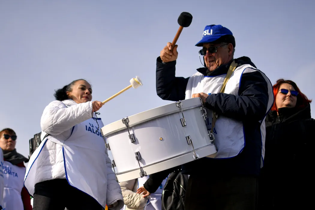 Profesorii și studenții protestează sub geamul lui Bolojan, pe fond asurzitor de vuvuzele. „Nu ne tăia speranța!”/”Vrem grevă generală”