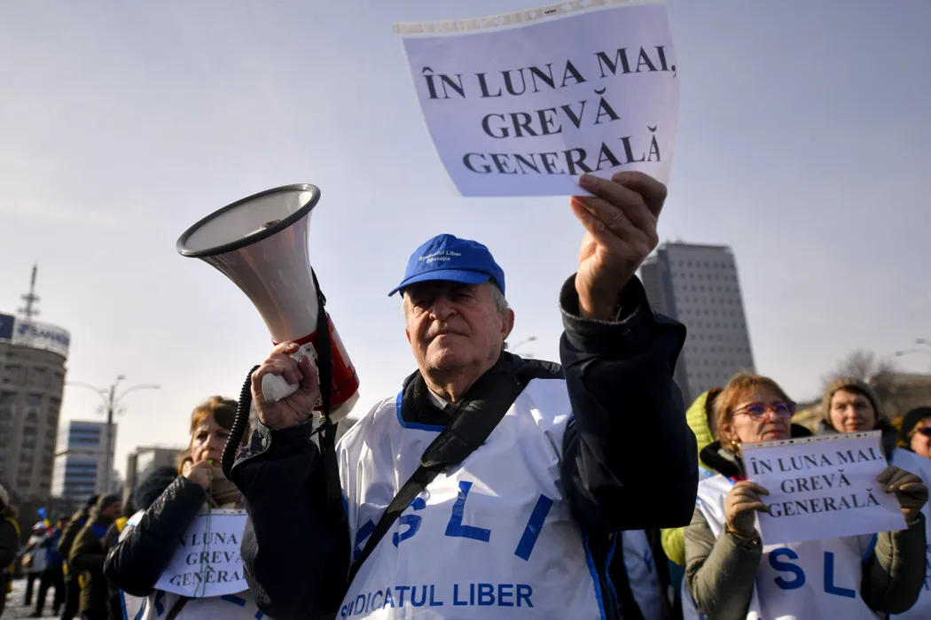 Profesorii și studenții protestează sub geamul lui Bolojan, pe fond asurzitor de vuvuzele. „Nu ne tăia speranța!”/”Vrem grevă generală”