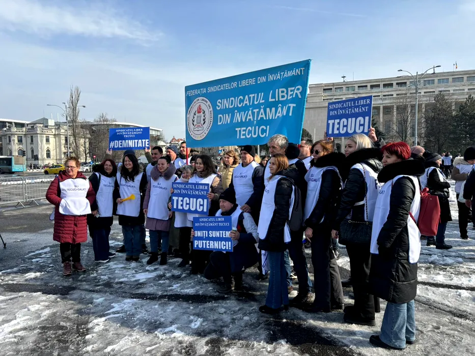 Profesorii și studenții protestează sub geamul lui Bolojan, pe fond asurzitor de vuvuzele. „Nu ne tăia speranța!”/”Vrem grevă generală”