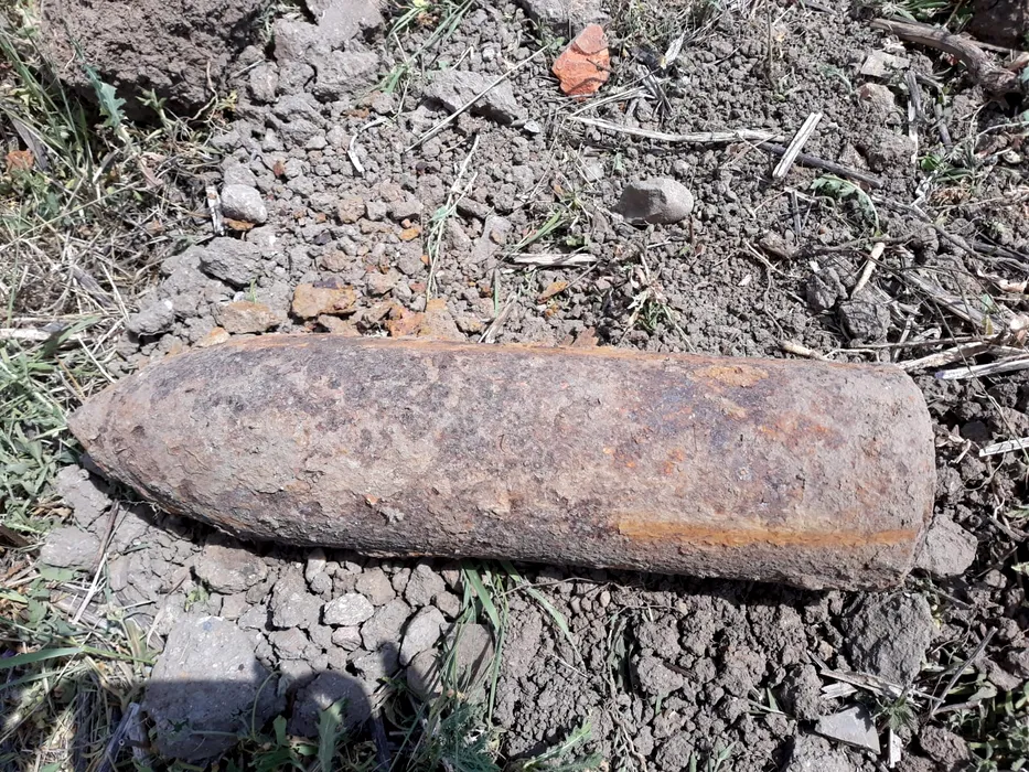 Proiectil de calibru 100 mm, neexplodat, descoperit în curtea unui localnic din Botoșani (FOTO)