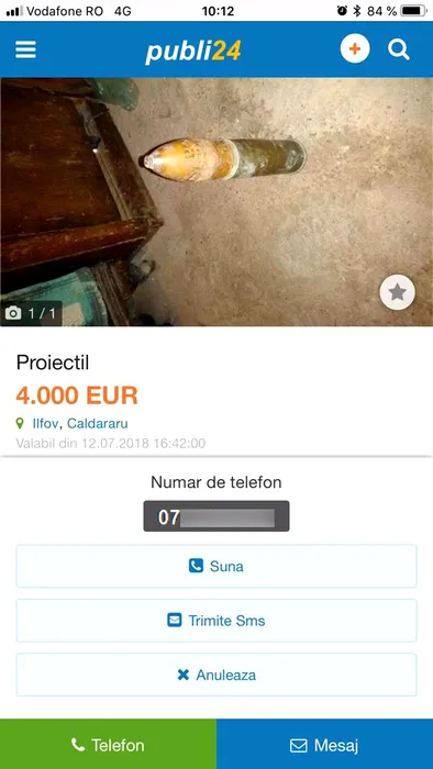 PROIECTIL DE VÂNZARE pe internet. Un muncitor de la Rosal spera SĂ SE ÎMBOGĂȚEASCĂ