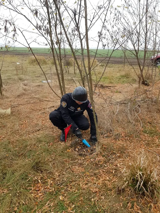 FOTO-VIDEO | Proiectil exploziv, descoperit în pădurea Băneasa din județul Giurgiu. Chemați la fața locului, pompierii au găsit și mai multe