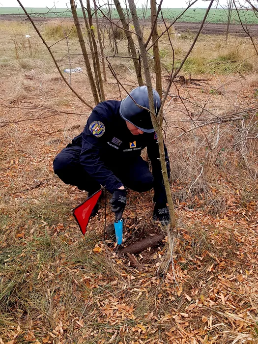 FOTO-VIDEO | Proiectil exploziv, descoperit în pădurea Băneasa din județul Giurgiu. Chemați la fața locului, pompierii au găsit și mai multe