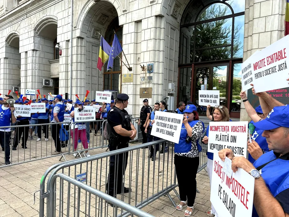PROTEST al angajaților de la Apele Române, în faţa Ministerului Mediului: Lucrăm cu apă, dar nu trăim cu aer