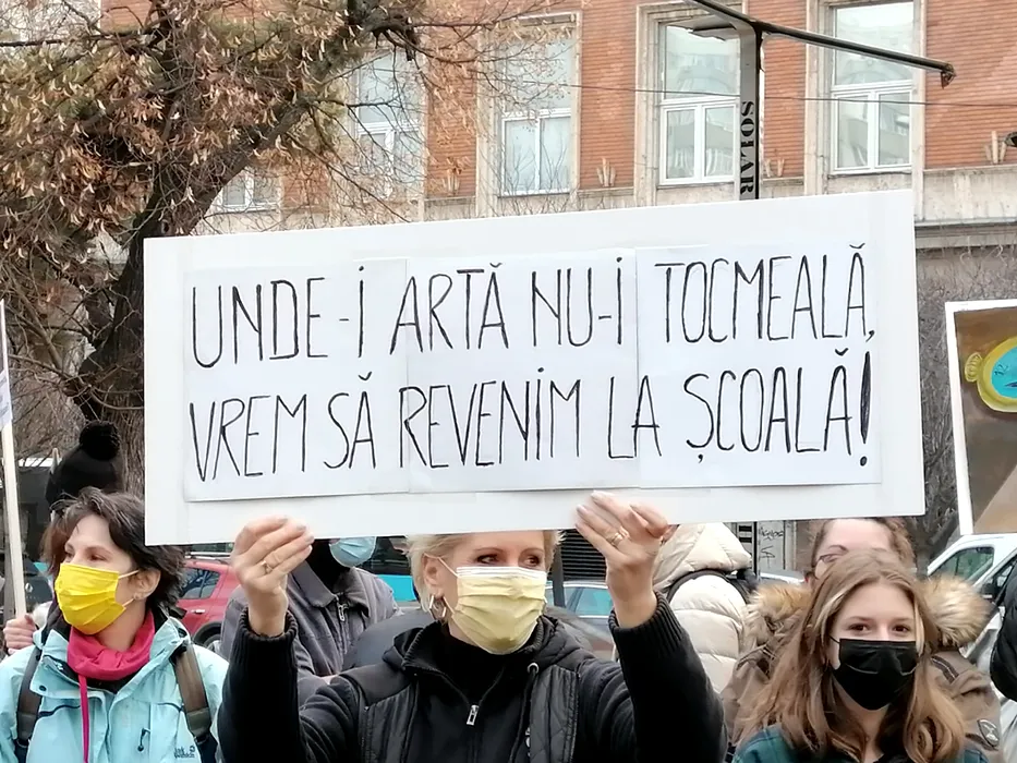 Protest al elevilor de la „Tonitza” în fața Primăriei sector 1. Tinerii se plâng că nu au unde învăța: „Unde-i artă nu-i tocmeală, vrem să revenim la școală”