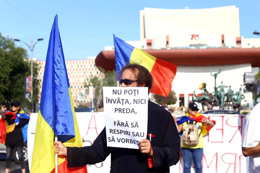 Protest anti-mască în Piața Universității! Peste 200 de persoane scandează că educația se face în ”cuști de plexiglas” FOTO