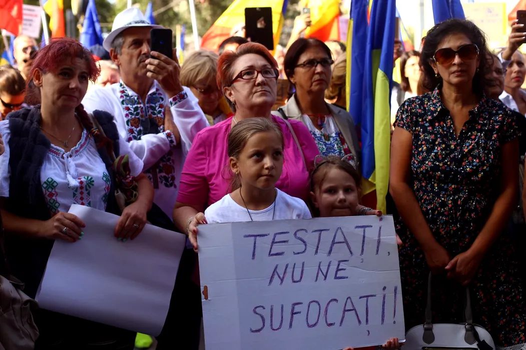 Protest anti-mască în Piața Universității! Peste 200 de persoane scandează că educația se face în ”cuști de plexiglas” FOTO