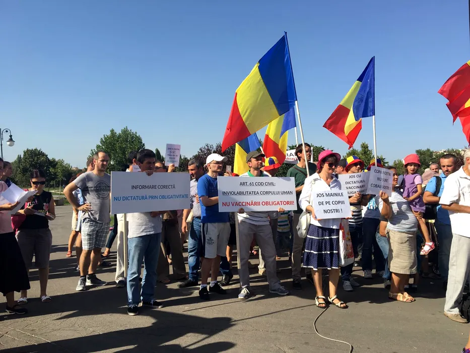 Protest antivaccinare în București. Zeci de persoane s-au strâns în Parcul Izvor. FOTO