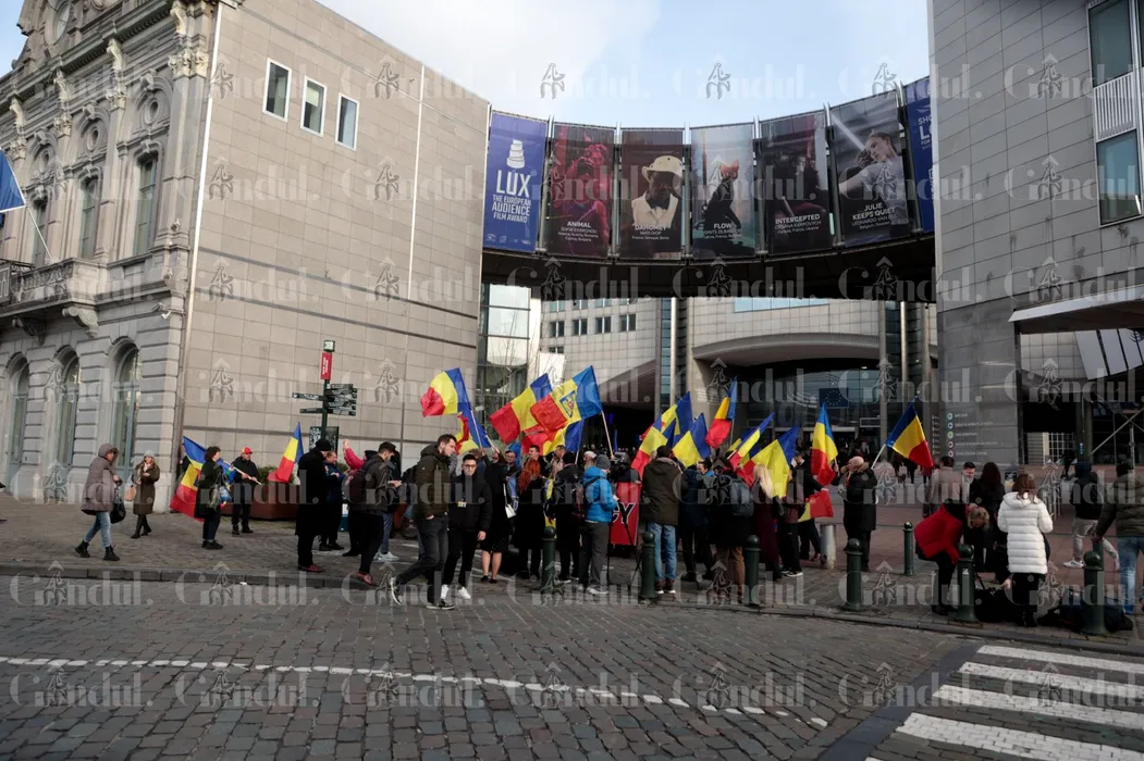 PROTEST AUR în fața Parlamentului European împotriva anulării alegerilor prezidențiale. Circa 150 de persoane sunt prezente la manifestație