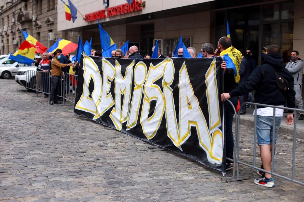 Oamenii adunați în fața sediului Ministerului Sănătății solicită demisia lui Vlad Voiculescu din funcția de ministru al Sănătății / Sursă FOTO: Alexandra Pandrea - Gândul