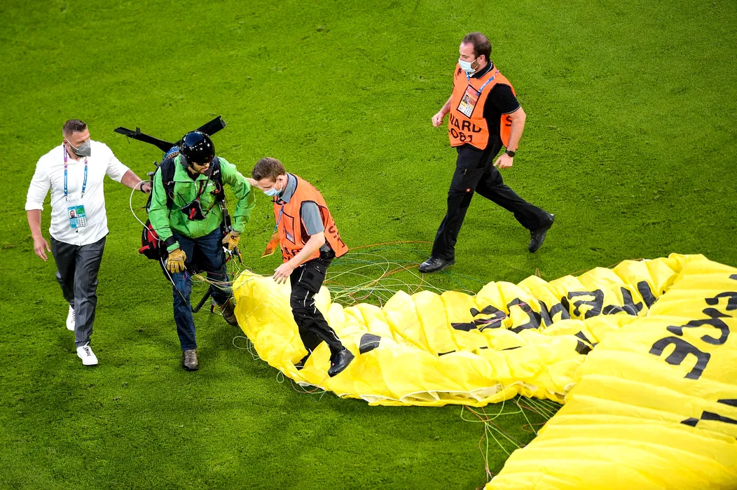 GALERIE FOTO: Protest cu parașuta la un meci EURO 2020: Mai multe persoane au ajuns la spital – FOTO/VIDEO