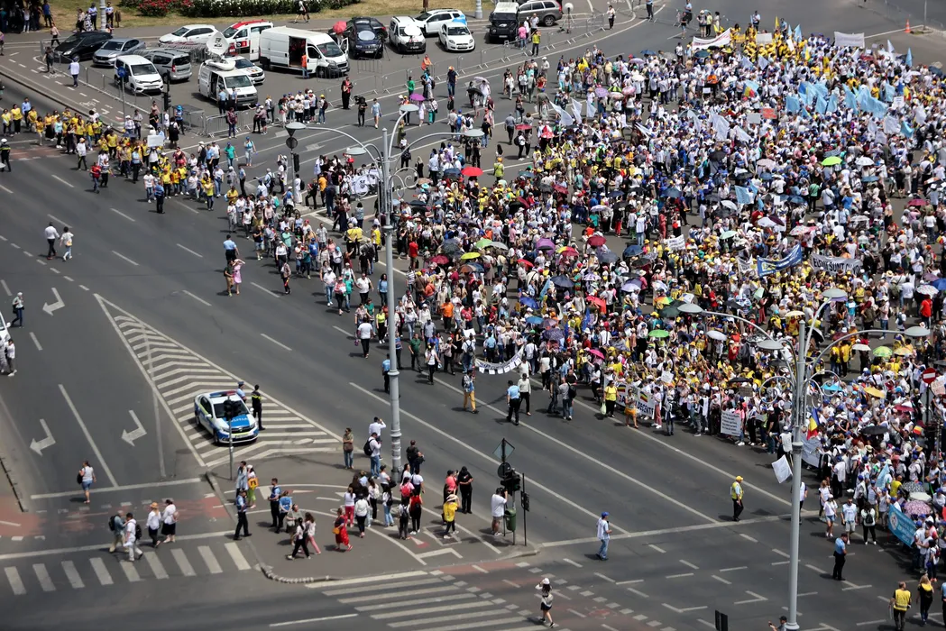 FOTO-VIDEO | Protest în București. Profesorii bat, din nou, la ușa „PALATELOR”. Traseul mitingului la care sunt așteptați 20.000 de persoane