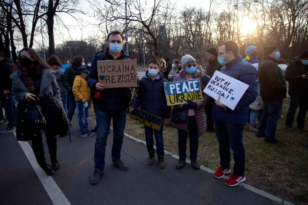 FOTO-VIDEO | Protest cu incidente în fața Ambasadei Rusiei din București. Bulevardul Kiseleff, blocat după ce jandarmii au vrut să aresteze un bărbat