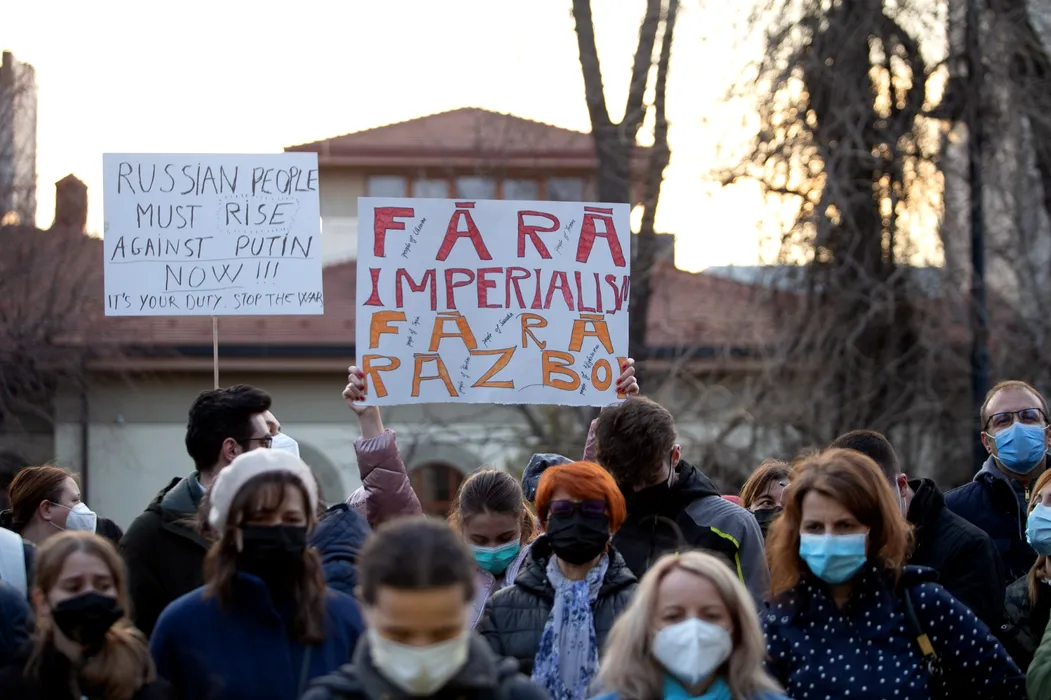 FOTO-VIDEO | Protest cu incidente în fața Ambasadei Rusiei din București. Bulevardul Kiseleff, blocat după ce jandarmii au vrut să aresteze un bărbat