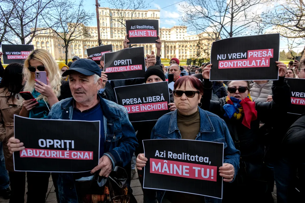 Protest în fața CNA după închiderea postului Realitatea Plus. Este prezent și George Simion