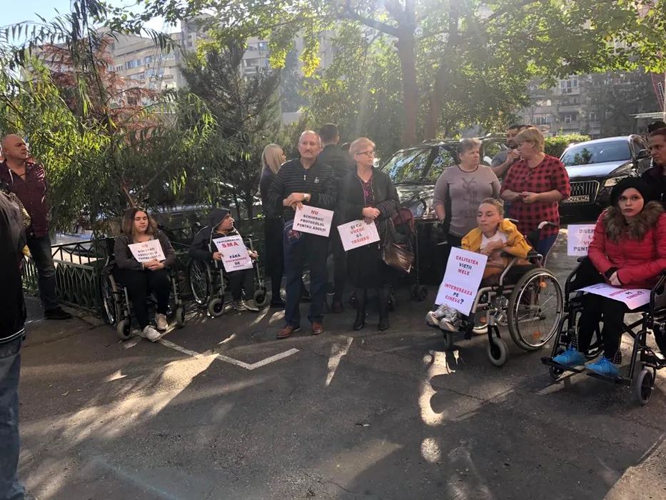 Protest în fața CNAS: Bolnavii de amiotrofie musculară spinală își cer dreptul la tratament – FOTO / VIDEO
