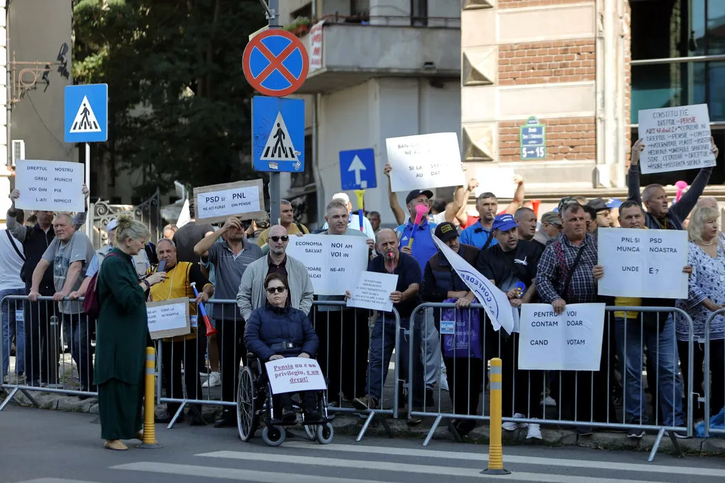 PROTEST în fața Ministerului Muncii: Sindicatele feroviare și alte organizații contestă noua Lege a pensiilor