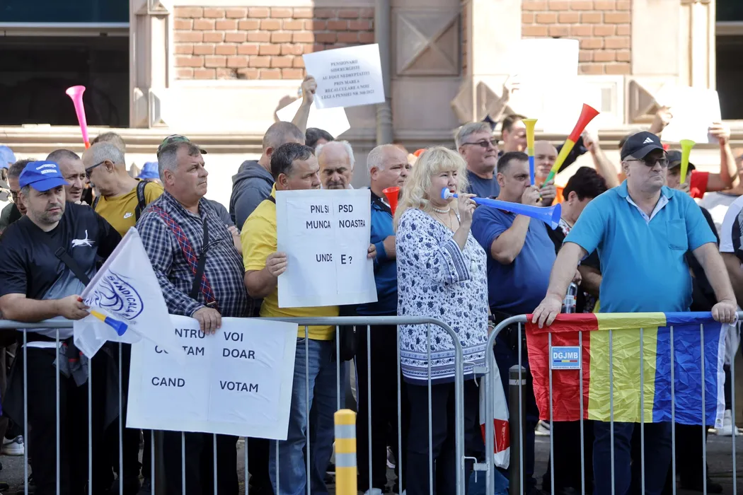 PROTEST în fața Ministerului Muncii: Sindicatele feroviare și alte organizații contestă noua Lege a pensiilor