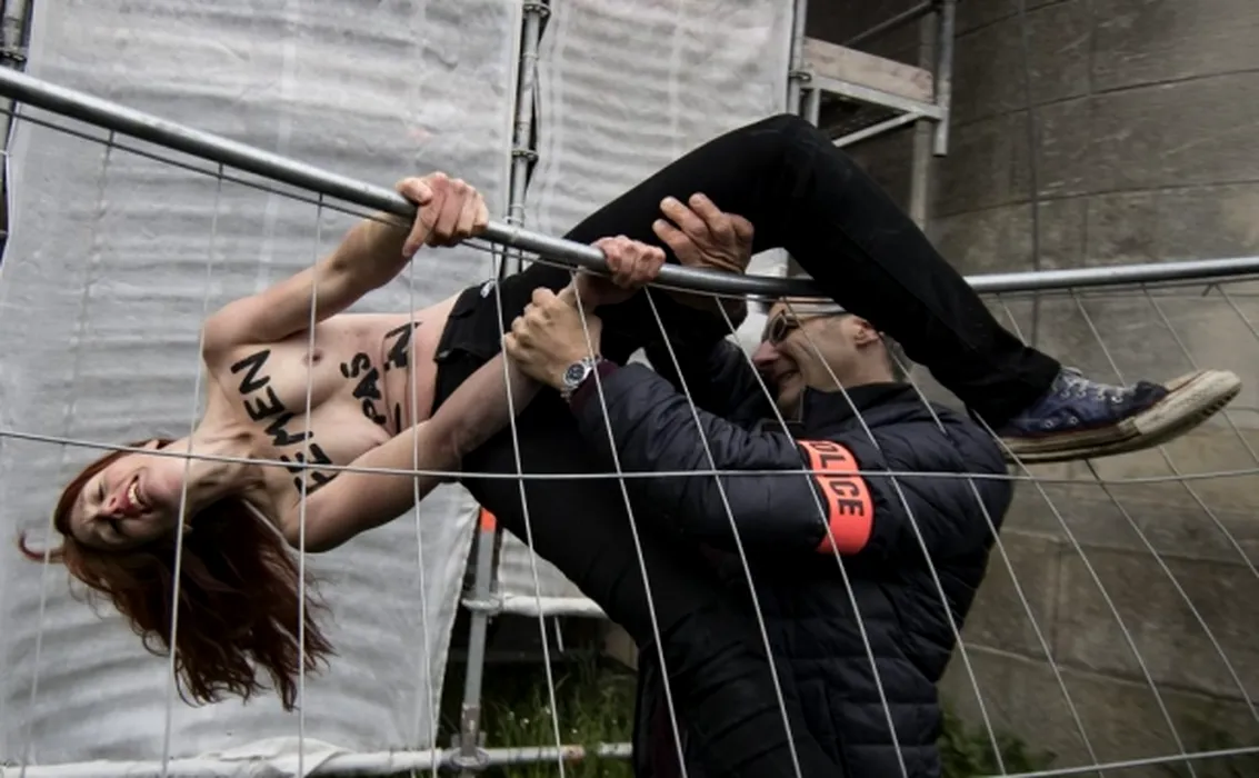 Protest în fața secției unde a votat Marine Le Pen. Mesajul afișat de Femen