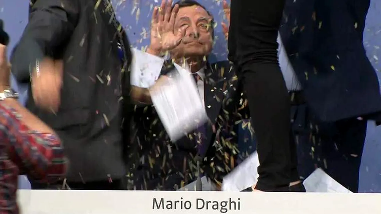 GALERIE FOTO: Protest în interiorul Băncii Centrale Europene. O femeie s-a urcat pe pupitru și a făcut un gest neașteptat