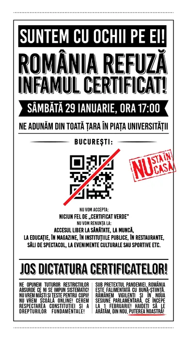 FOTO | Protest în Piața Universității împotriva certificatului verde și a vaccinării copiilor, în a patra zi cu peste 30.000 de cazuri de Covid în România