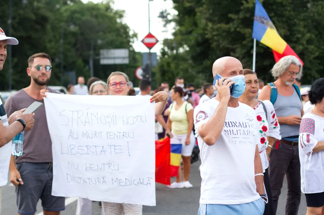 Protest în Piața Victoriei, fără măști și fără păstrarea distanței fizice / UPDATE: Jandarmeria a dat amenzi de 16.000 de lei participanților + Ce legături există între acțiune și propaganda rusă (VIDEO & GALERIE FOTO)