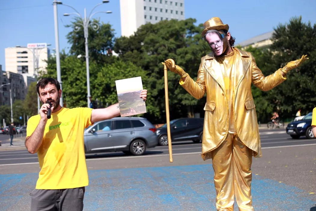 Protest în Piața Victoriei după declarațiile premierului despre Roșia Montană. Greenpeace: „Florin Cîțu devine cel mai nou susținător al exploatării cu cianuri în Apuseni”. Reacția Guvernului | FOTO, VIDEO