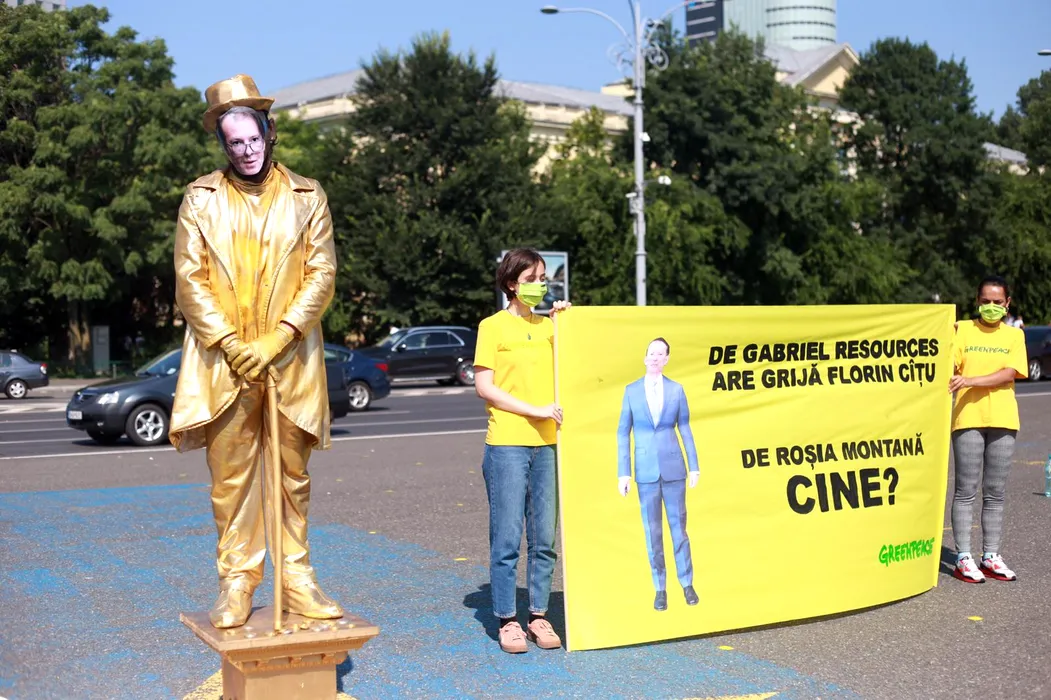 Protest în Piața Victoriei după declarațiile premierului despre Roșia Montană. Greenpeace: „Florin Cîțu devine cel mai nou susținător al exploatării cu cianuri în Apuseni”. Reacția Guvernului | FOTO, VIDEO