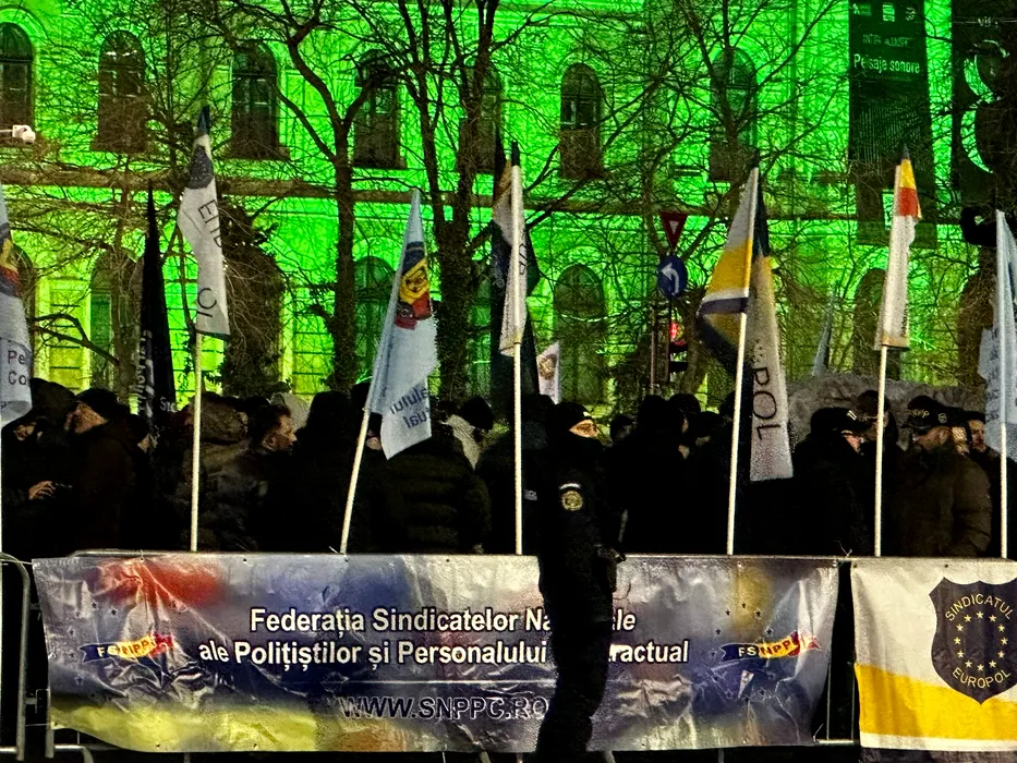 Polițiștii și militarii au protestat în fața guvernului împotriva modificării Legii pensiilor militare: Toți românii l-ar vrea pe Bolojan la pușcărie