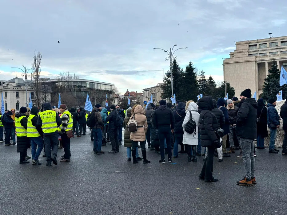 Polițiștii și militarii au protestat în fața guvernului împotriva modificării Legii pensiilor militare: Toți românii l-ar vrea pe Bolojan la pușcărie