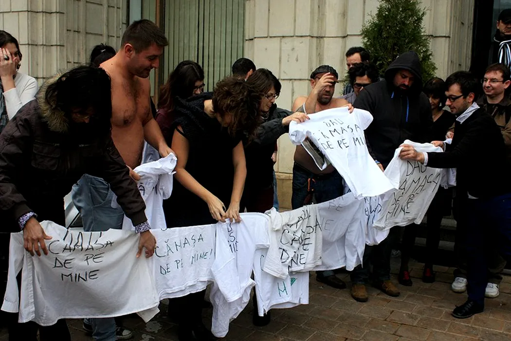 Protest în pielea goală la Ministerul de Finanțe. GALERIE FOTO