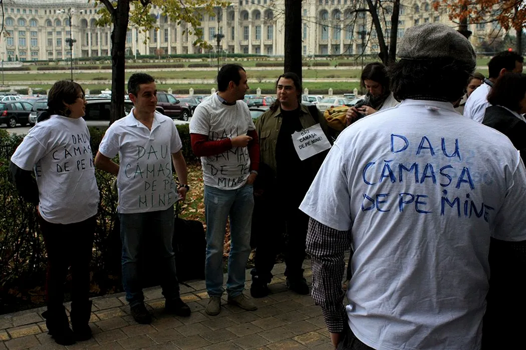 Protest în pielea goală la Ministerul de Finanțe. GALERIE FOTO