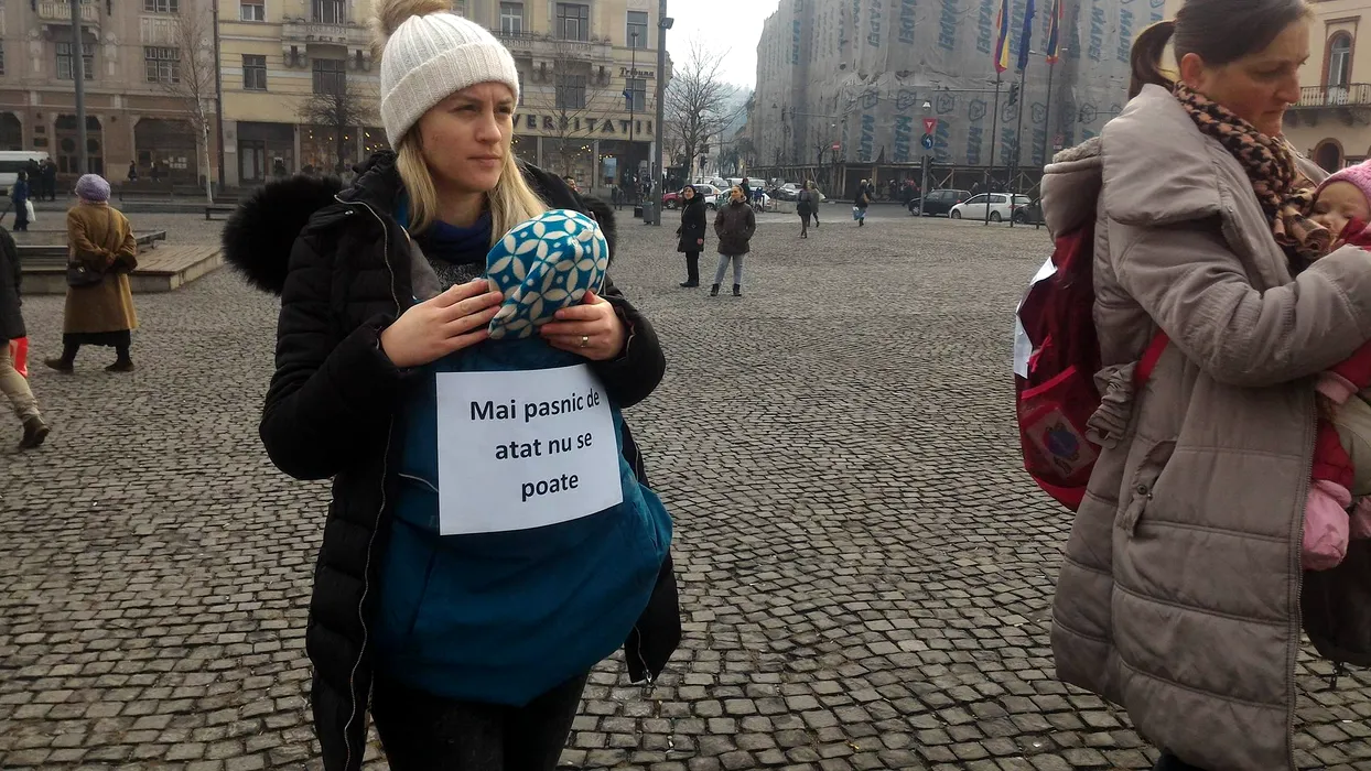 Protest în „tura de dimineață”, la Cluj, al mămicilor cu copii în cărucioare sau în brațe