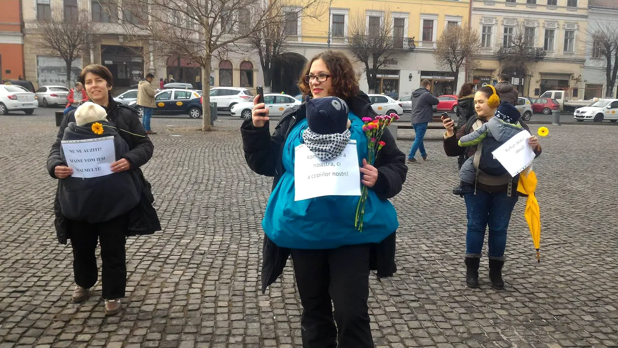 Protest în „tura de dimineață”, la Cluj, al mămicilor cu copii în cărucioare sau în brațe