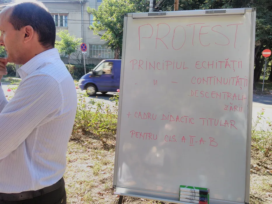 PROTEST inedit. Oră de muzică ținută în fața IȘJ Timiș de către părinți, supărați din cauza ÎNVĂȚĂTOAREI