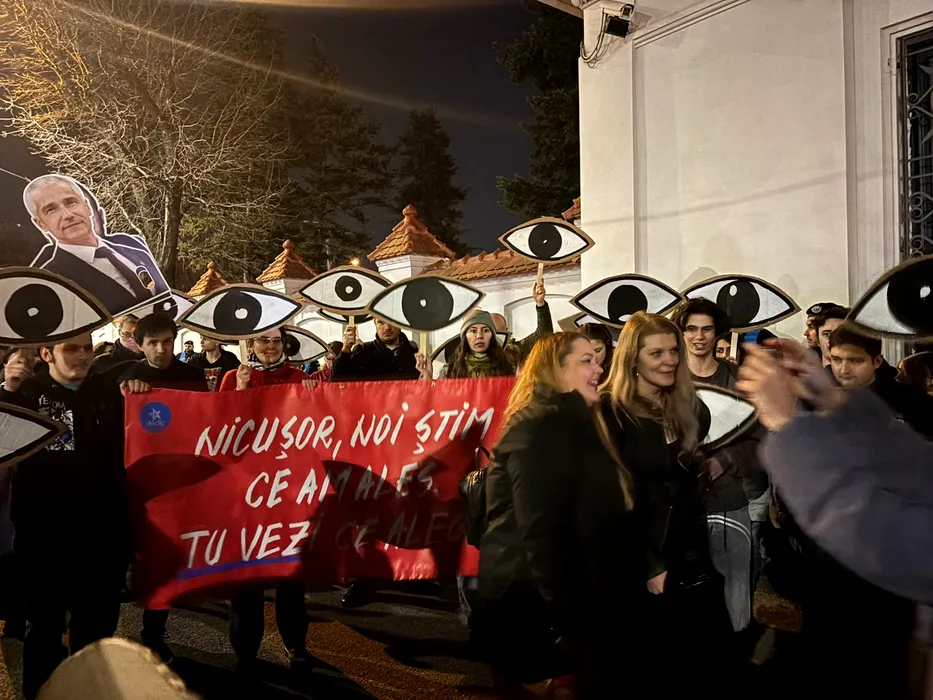 Președintele Nicușor Dan a ieșit în fața Palatului Cotroceni să discute cu protestatarii. Printre aceștia, activiștii de serviciu, Angi Șerban și Marian Rădună, angajat în mai toate acțiunile USR